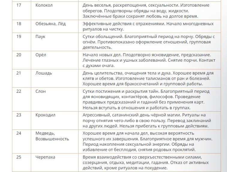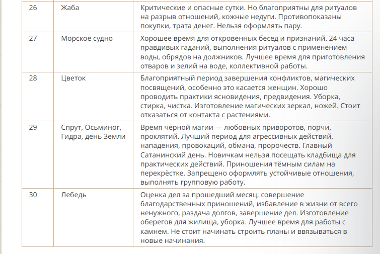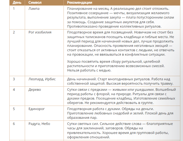 Ограничения: не рекомендуется вредоносная магия, ее действие в этот день приторможено.