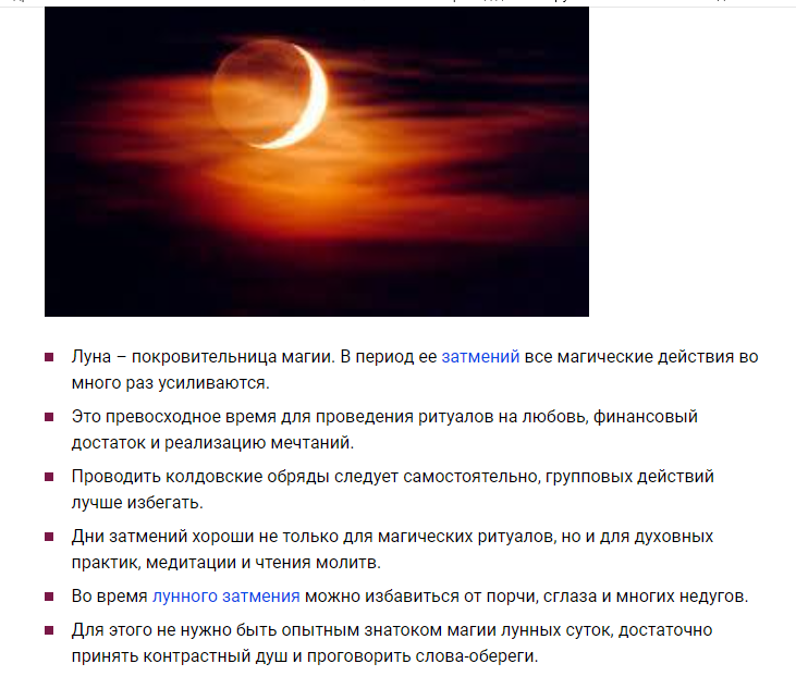 Луна – покровительница магии. В период ее затмений все магические действия во много раз усиливаются.